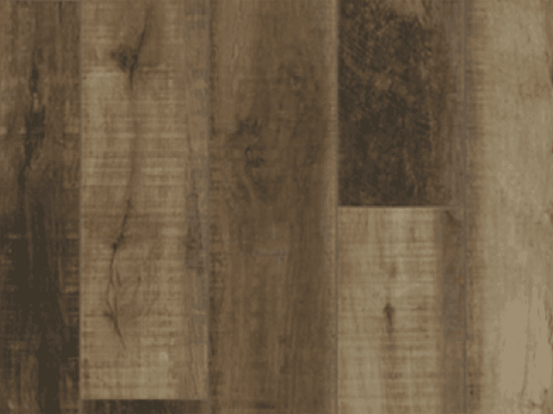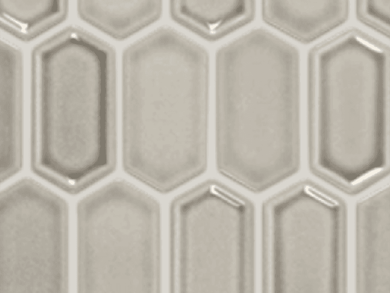The Pewter canvas offers a calm, grounded feel with a modern edge. Dark-stained cabinetry creates a dramatic base, brightened by white quartz countertops. Hexagon tiles in the kitchen add earthy warmth, while brushed nickel fixtures provide a clean, refined touch.